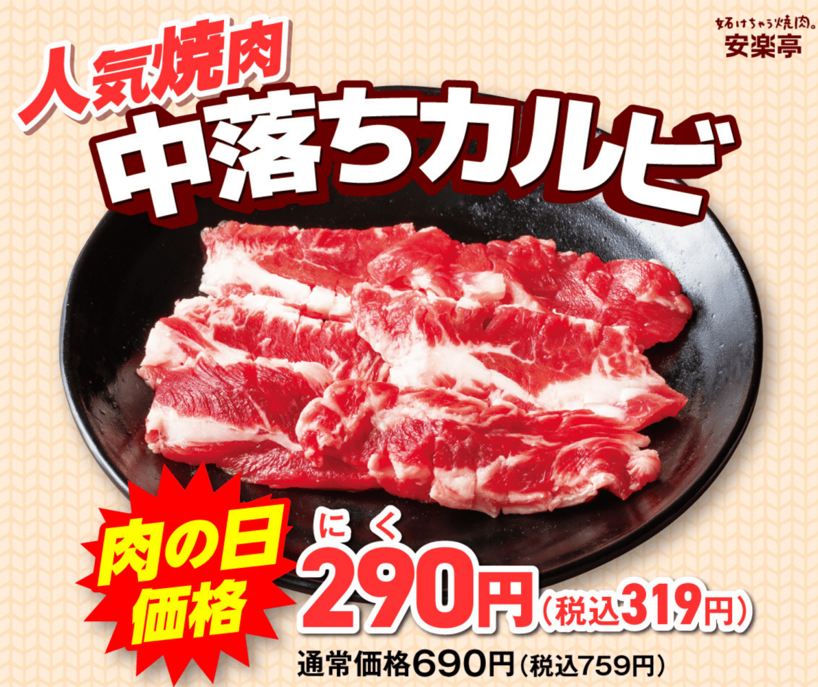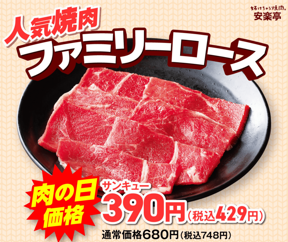 【毎月29日は肉の日】安楽亭『肉の日』は10日間焼肉祭り開宴!定番人気焼肉、牛タンが衝撃プライスに!【株式会社 安楽亭 【練馬関町店】】